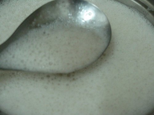快11點才煮好所以就直接放到今天早上~泡泡很多~可撈可不撈~