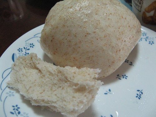 自己第二次做的全麥饅頭~這次用100克全麥粉~400克中筋麵粉做的~